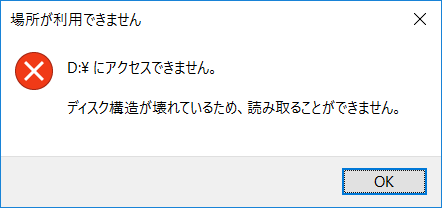 対象のUSBメモリはDドライブなので、ファイルシステムを見たところ