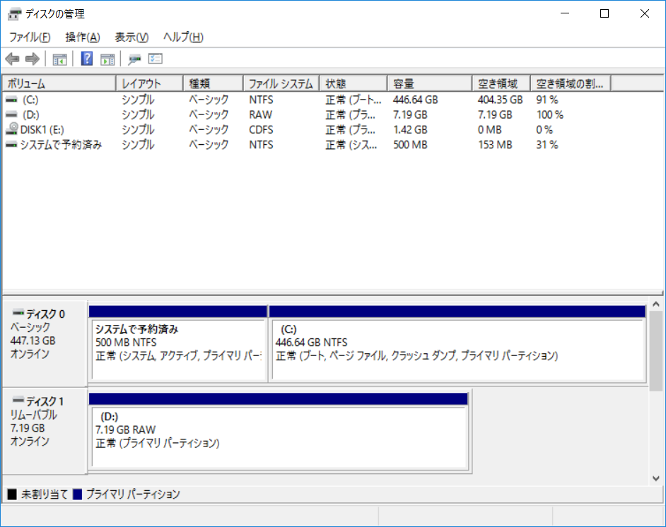 まず最初にUSBメモリの状態を確認します。