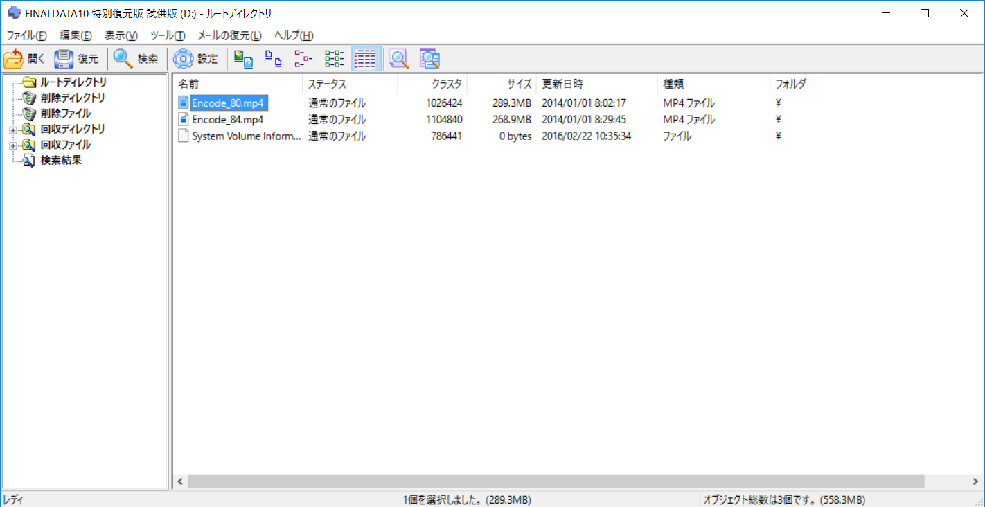正規版は有料なので今回は体験版で復旧できるか確認してみます。