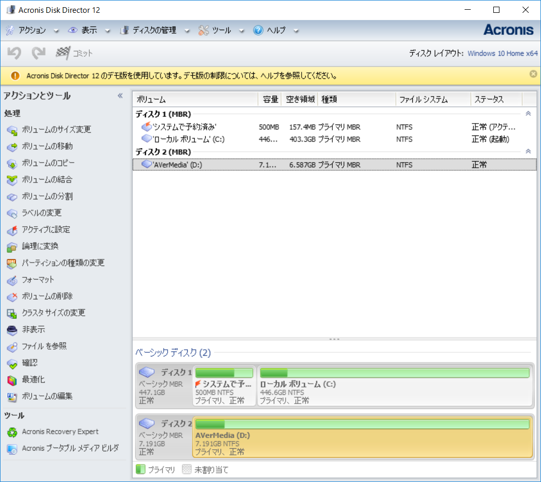 【パソコントラブル】ファイルシステムがNTFSのHDDがRAWになった問題を解決する [パソコンのこと]Acronis Disk Director…Acronisなら転職前の職場でバックアップ用に使ったことを思い出しました。